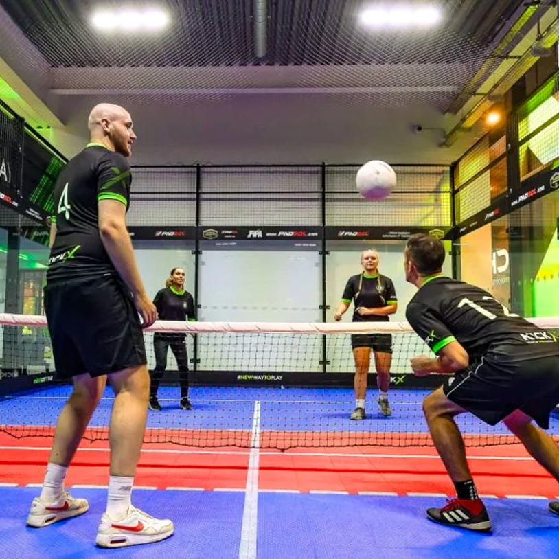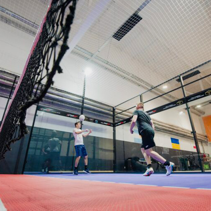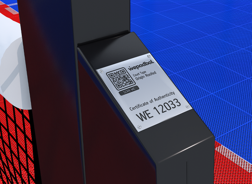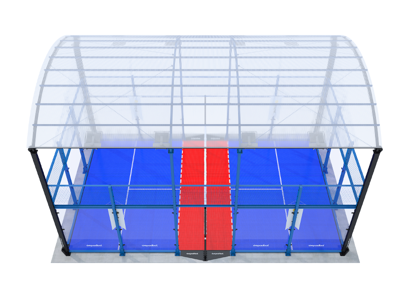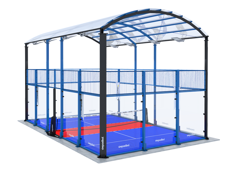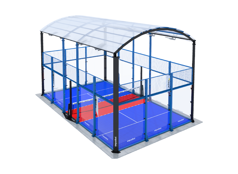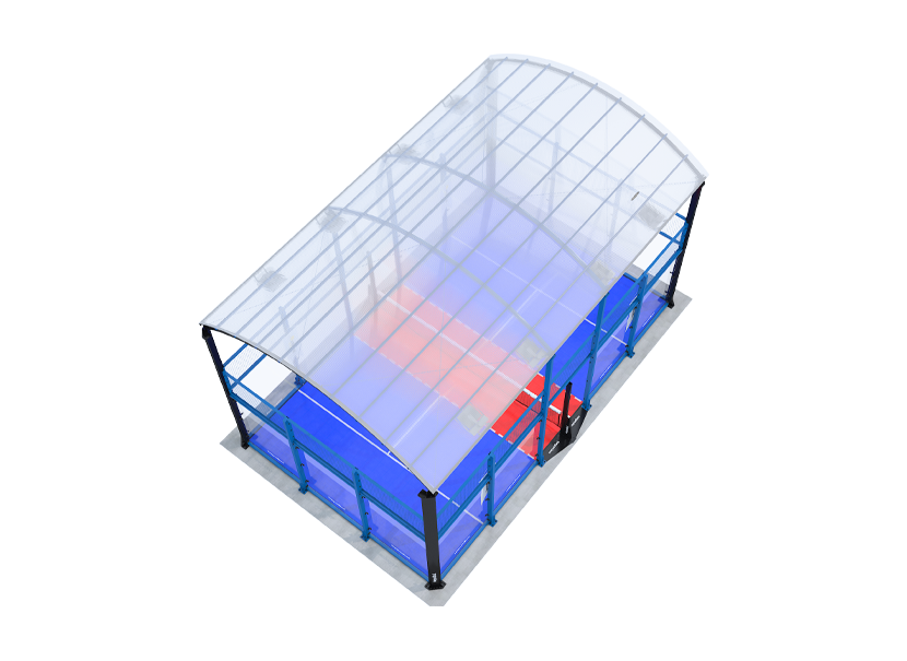 El Origin Roofed Pista de Padbol es una pista de 6x10 metros rodeada por una estructura de acero, vidrio templado y paneles de malla metalica galvanizada. Construida con suelo modular de PVC o cesped sintetico opcional, incluye un techo de policarbonato y iluminacion LED. Disenada segun los estandares internacionales de padbol, ofrece durabilidad, comodidad y seguridad para el juego en exteriores.
