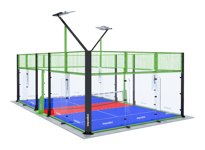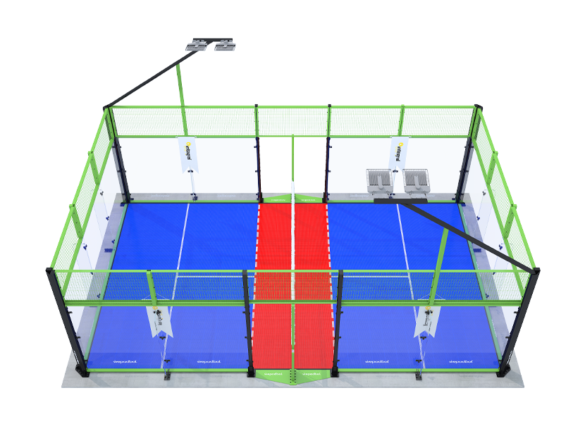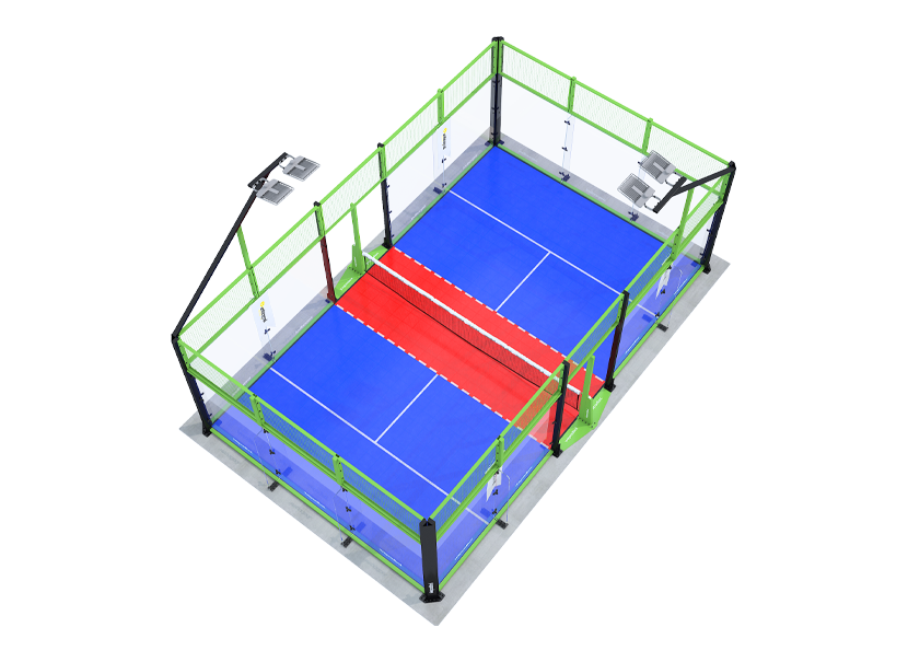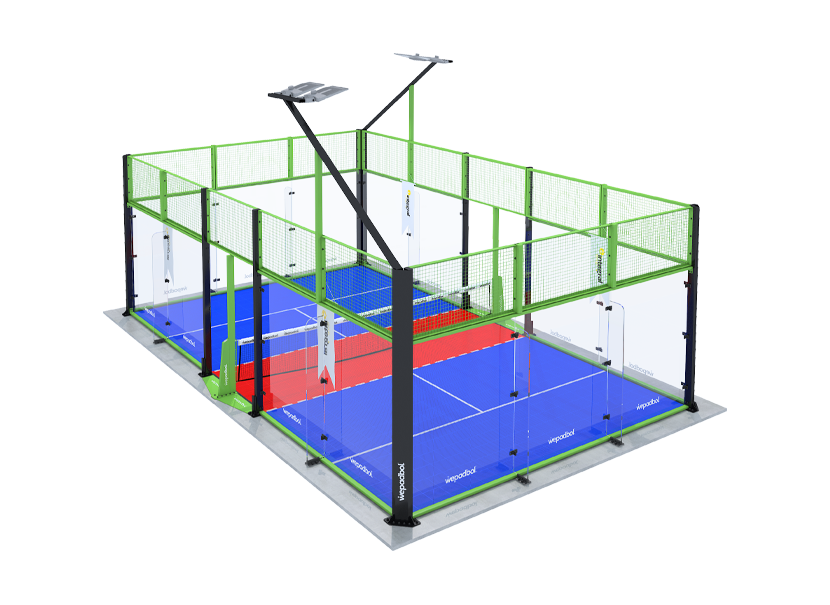 El Panoramic Pista de Padbol es una pista de 6x10 metros, disenada con una estructura panoramica de acero, vidrio templado y paneles de malla metalica galvanizada. Construida con suelo modular de PVC o cesped sintetico opcional, ofrece maxima visibilidad y durabilidad. Adecuada tanto para interiores como exteriores, brinda una experiencia de juego segura, elegante y de alto rendimiento.